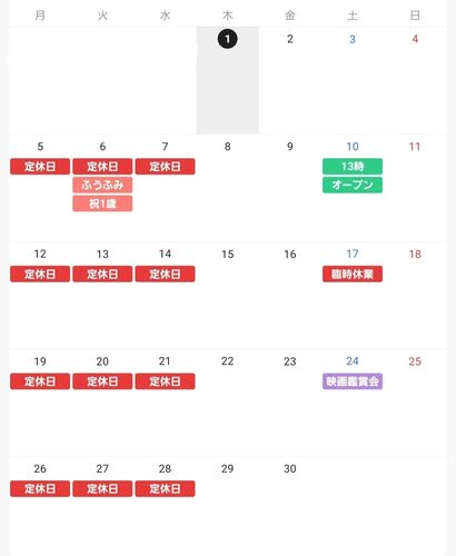 6/6〈ふう〉〈ふみ〉1歳のお誕生日でーす! 6/10〈のび〉トライアル午前中にいきますので13時オープンとさせていただきます 6/17臨時休業いたします 6/24『映画鑑賞でもしましょう会』20時スタートでーす!ぜひご参加くださいね~ 営業時間:11時~19時 定休…