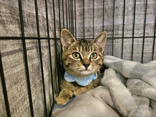 〈ぎ〉3兄妹 2025.7.14生〈ぎん〉♀ 只今お預かり中の〈くらま〉くんの兄妹です くらまは 保護主さんの娘さん家の子になることが決まってまして、 ペット可の物件へお引っ越し中、その間のお預かりでお店にいてもらってます。 〈ぎん〉は一昨日のお昼頃、3時…