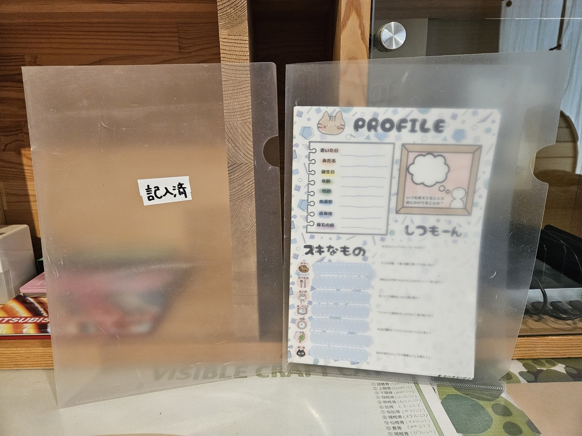 初めての方やお久しぶりの方には 猫紹介カードをお渡しします