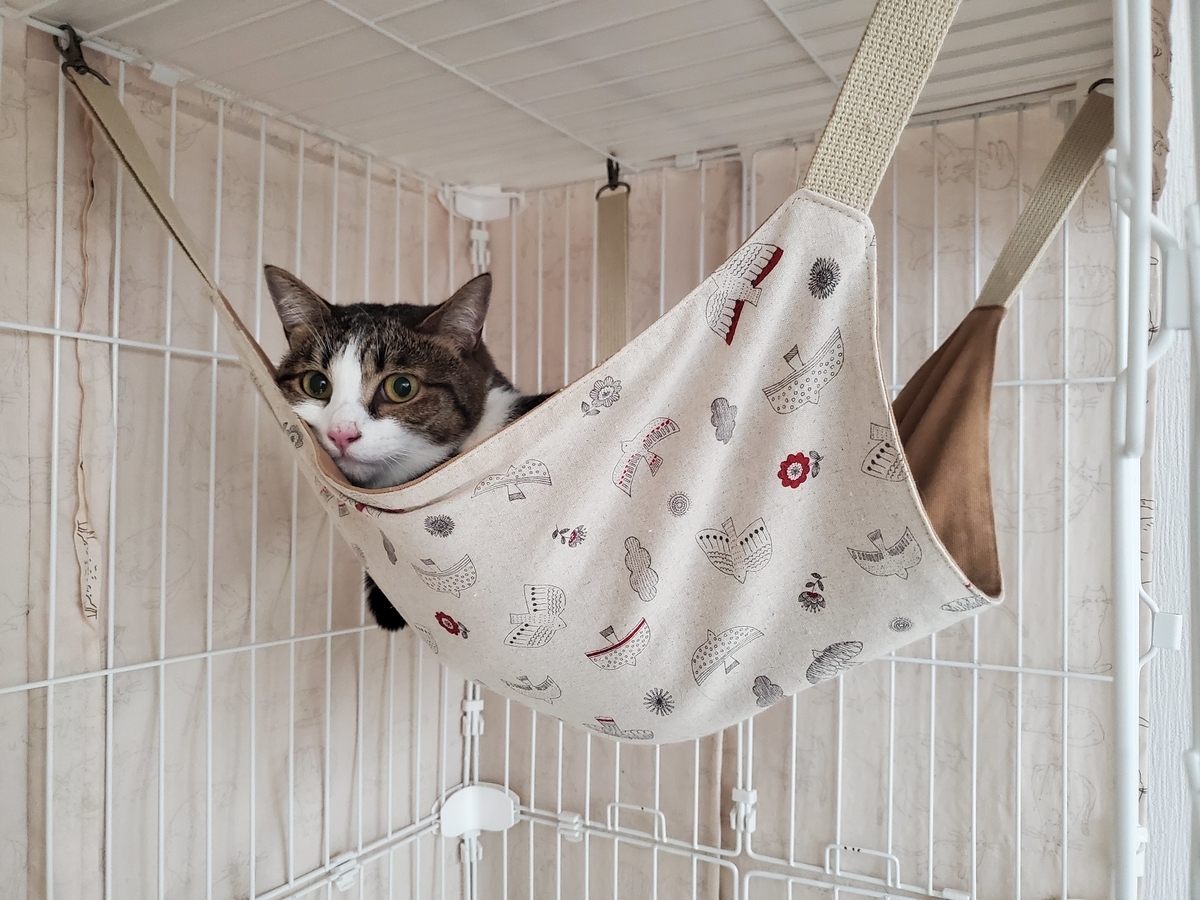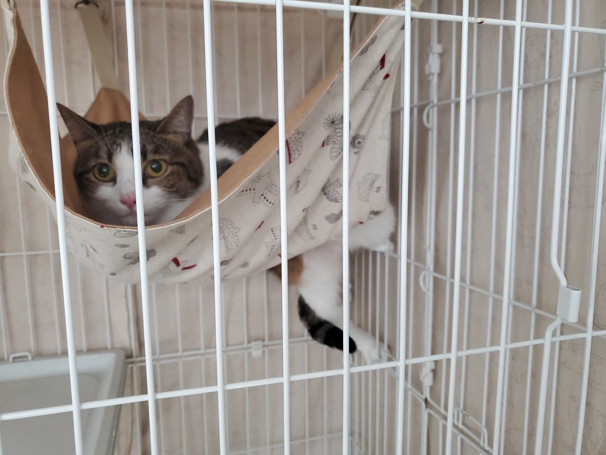 みかんちゃん、緊張しすぎて ハンモックにあがるのも 一苦労だったんです~汗