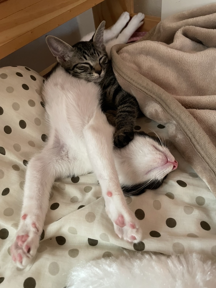 お互いの存在がストレスにならなければ それで◯ いっしょに寝たり いっしょに遊んだりはもう少し長い目でみていきましょうとなりました。