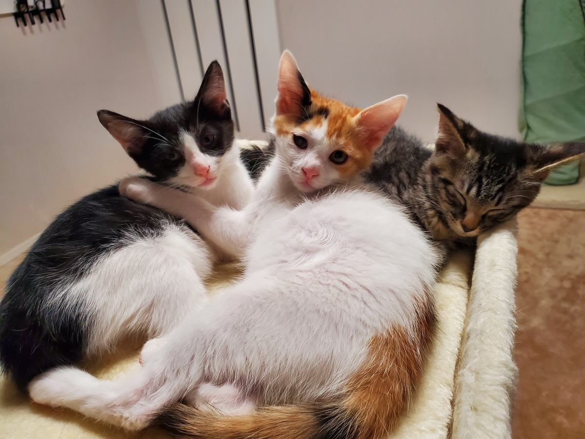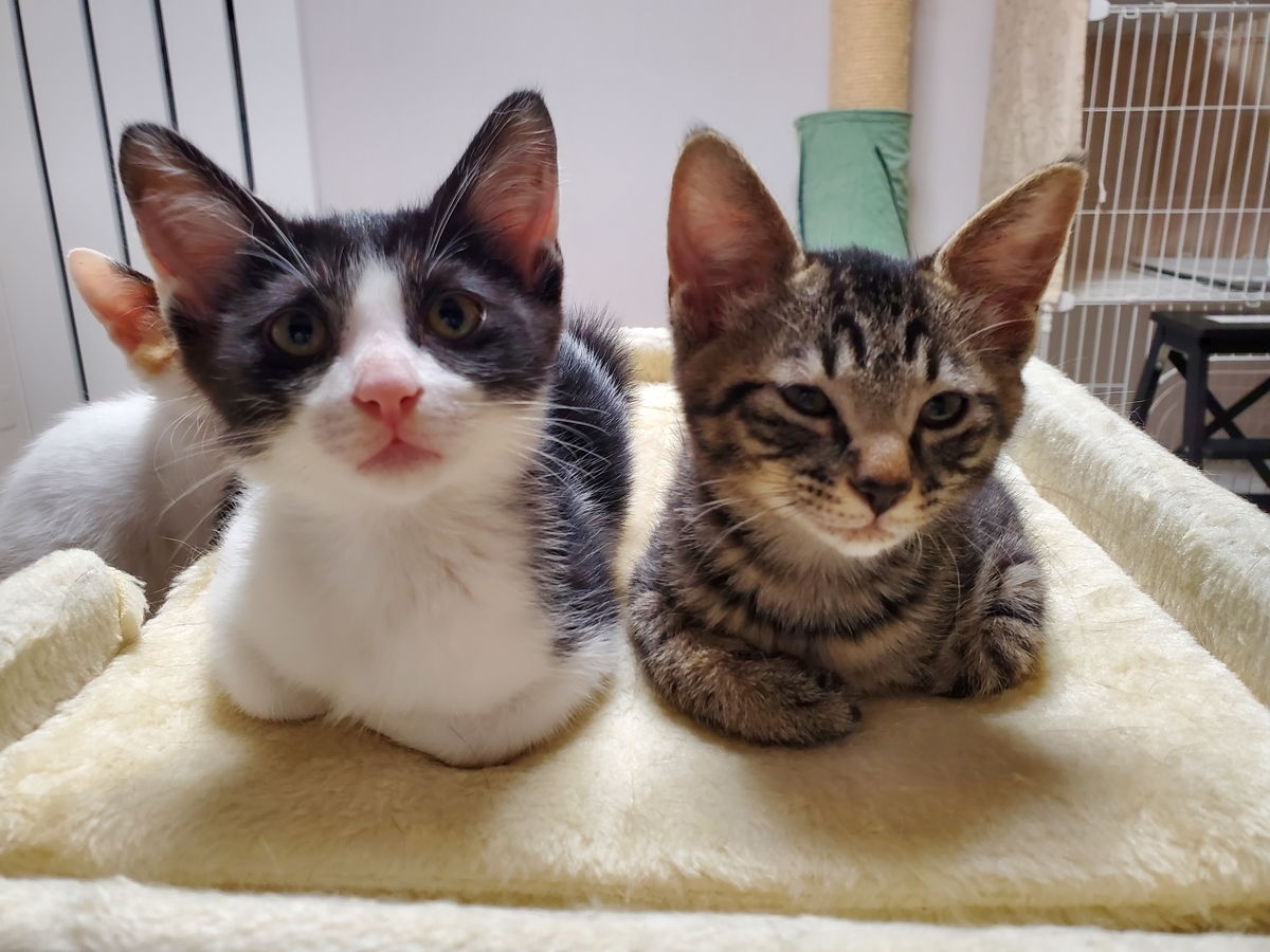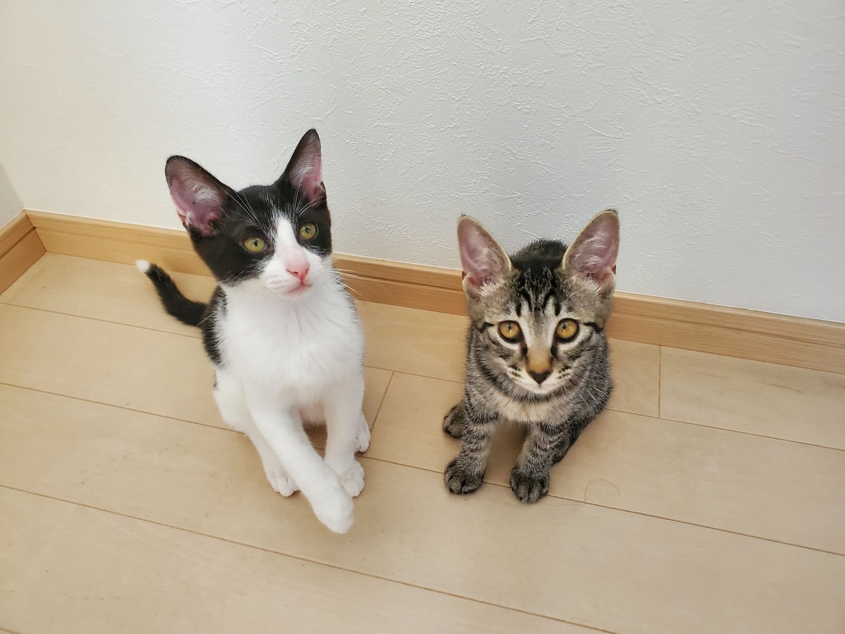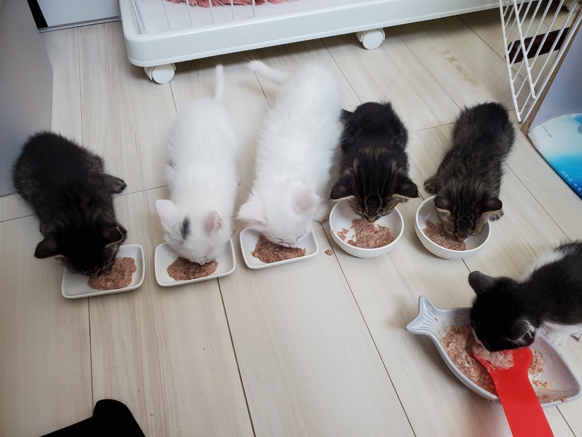 フタリから3匹ずつ産まれ、母猫フタリに加え産まれた子猫ヒトリをお家で迎えるとのことで