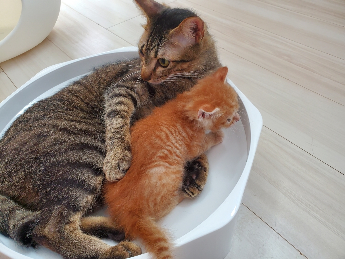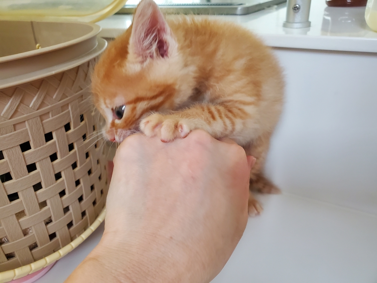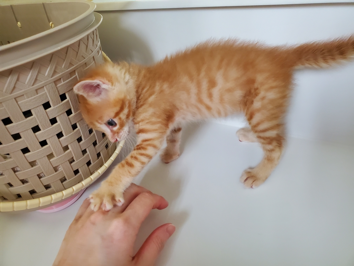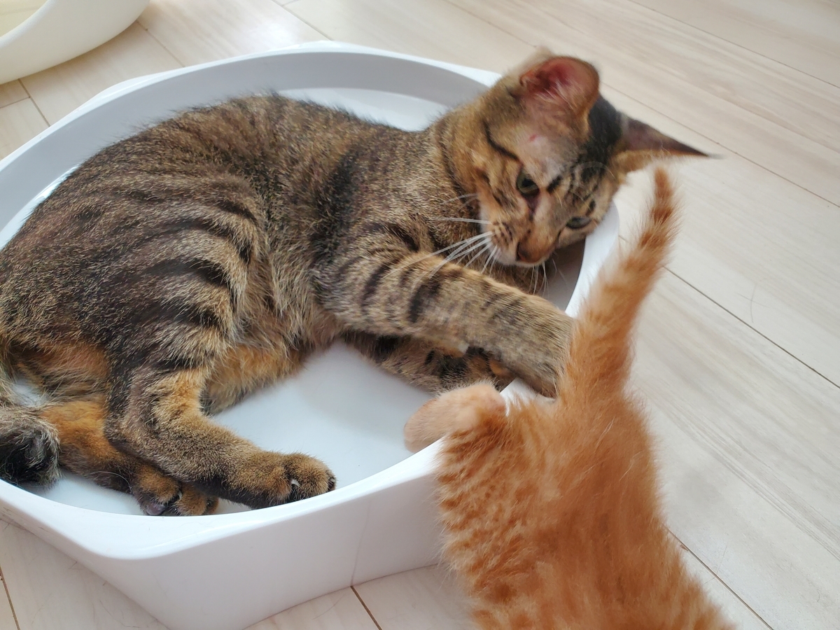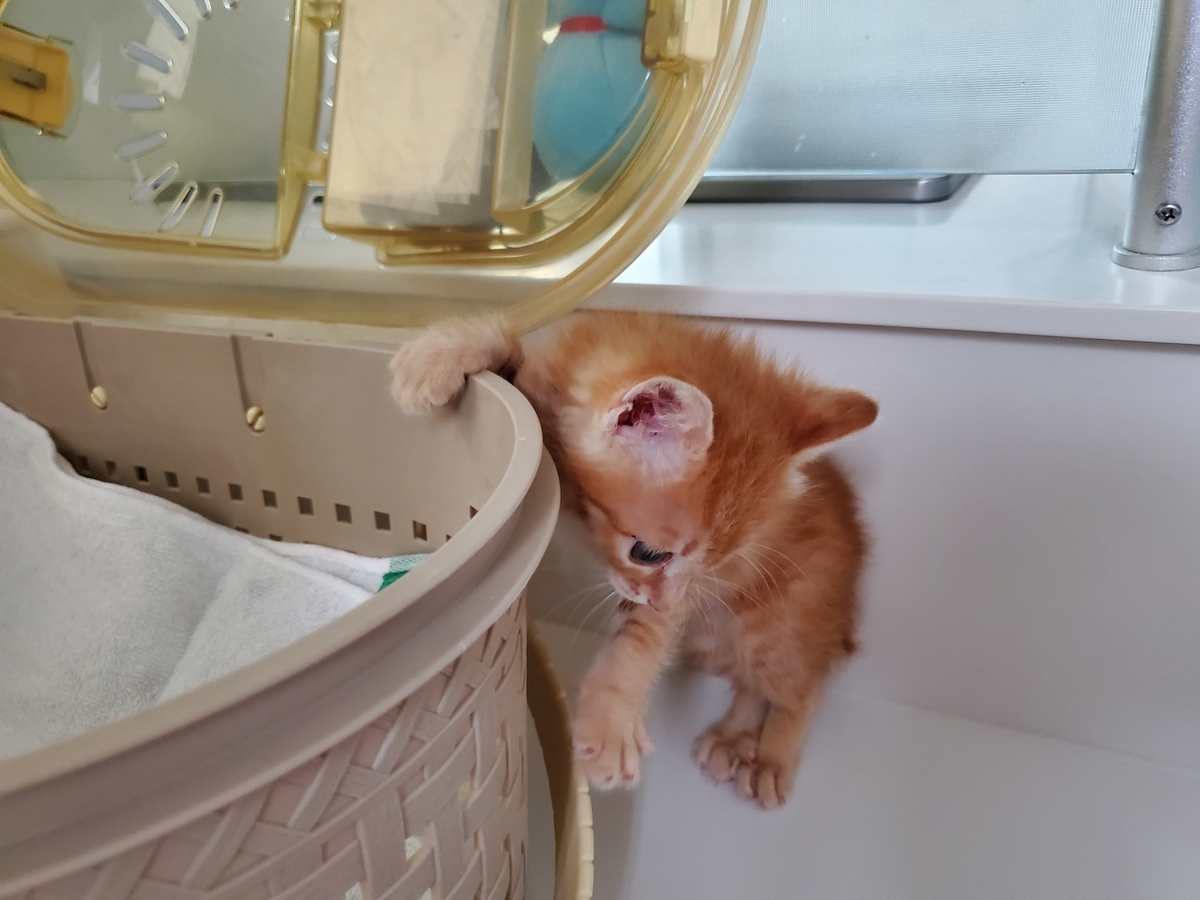 だけど おトイレ ヒトリでできるようになったので こちらのカゴは卒業して、ケージに移動しました。