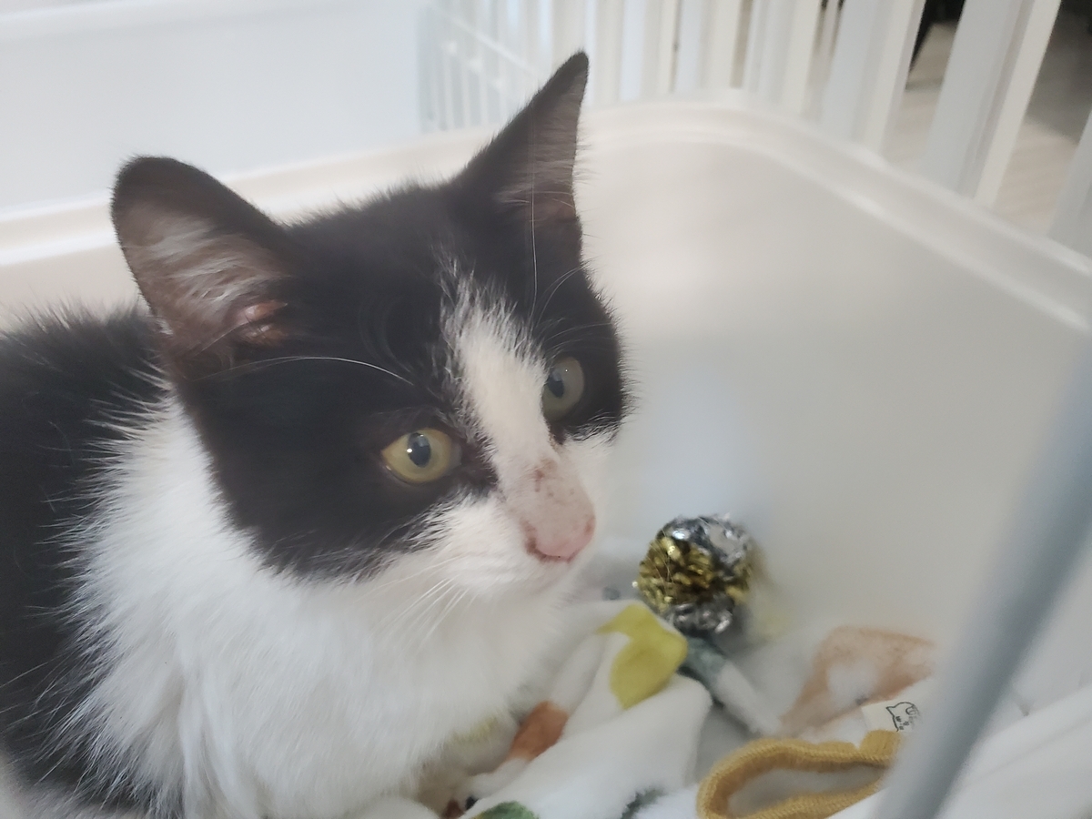 母猫とフタリ お外生活してましたが、母猫の避妊をお約束いただけたので お引き受けすることに。