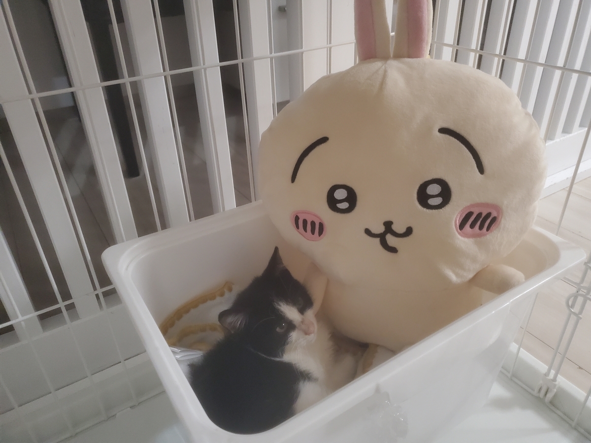 3~4ヶ月くらいの男の子です。里親さんのお友だちからのヘルプでやってきました。