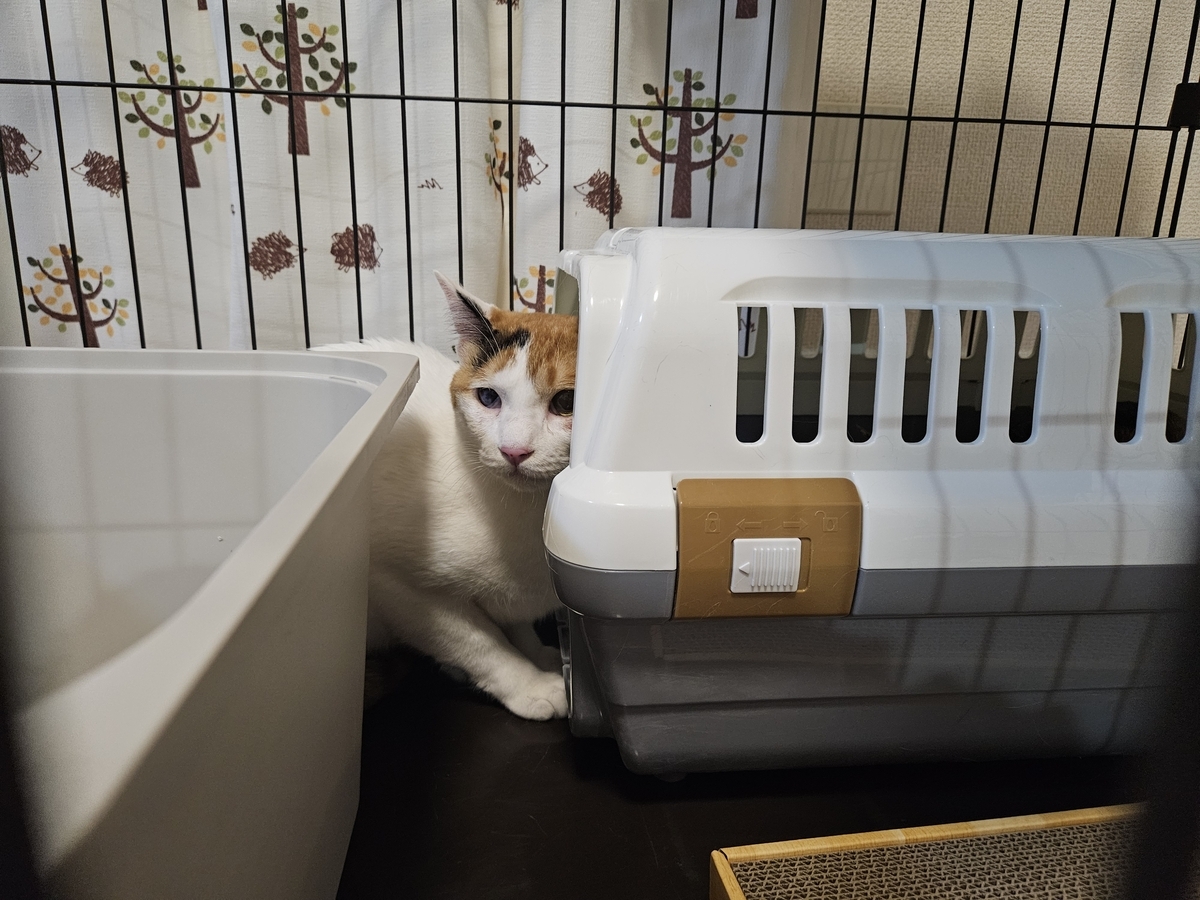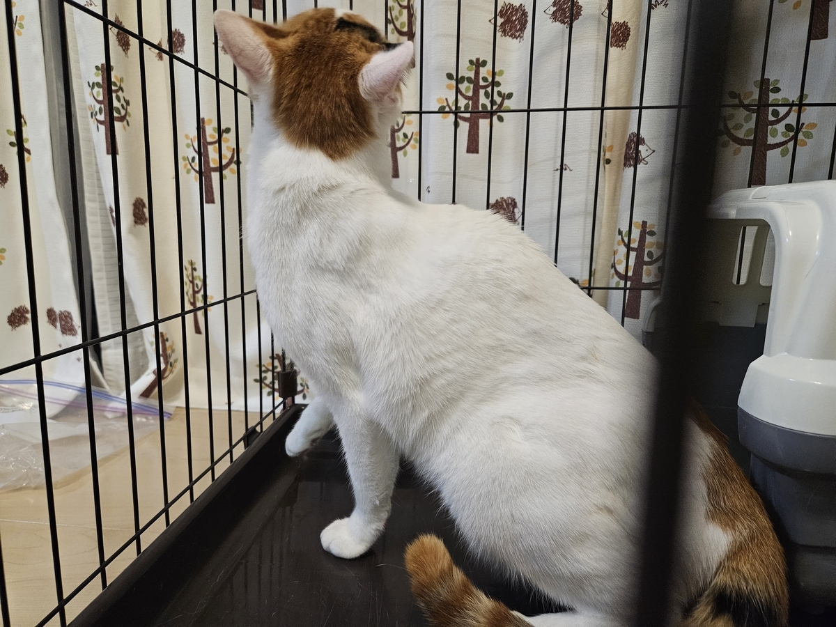 ケージもまだ使いつつ、フリーの時間を長くしていく作戦です