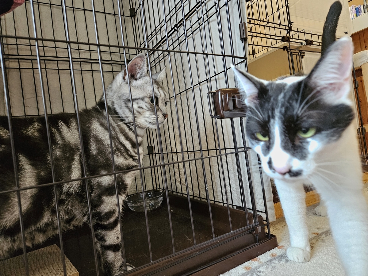 ヒートアップすると大変なことになるので、ちゅーるを装備の上 注視しています。