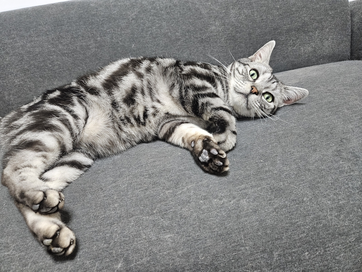 このように ゴローンと寝転がってるときはお触り禁止です